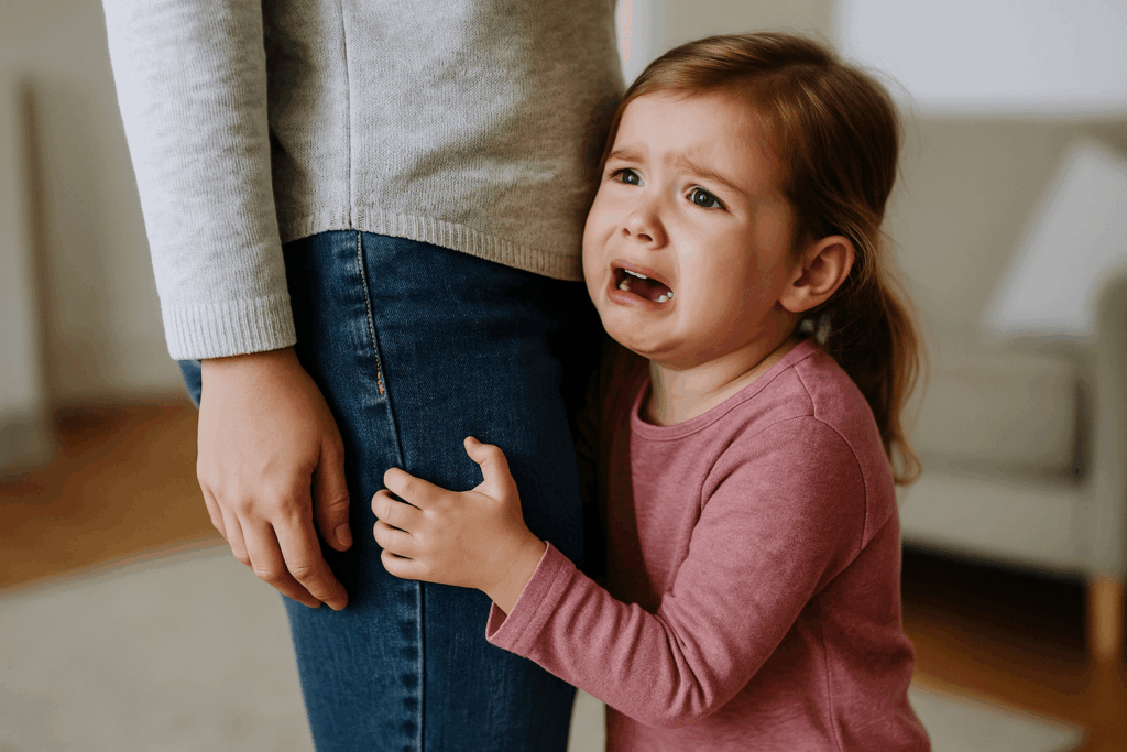 부모와 떨어질 때 심하게 불안해하고, 분리 상황을 견디지 못한다.