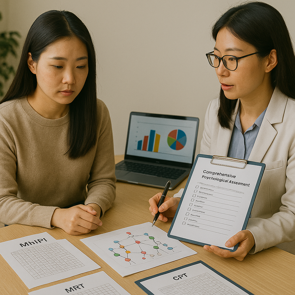 - 종합심리검사를 통해 내담자의 인지기능, 정서상태, 성격특징, 대인관계, 핵심갈등영역, 심리적 자원 등의 심리적 기증 전반을 종합적으로 탐색하고 평가합니다. 또한 내담자의 문제와 증상을 정확하게 진단하고, 향후 심리치료의 전략수립에 필요한 정보를 체계적으로 분석합니다.